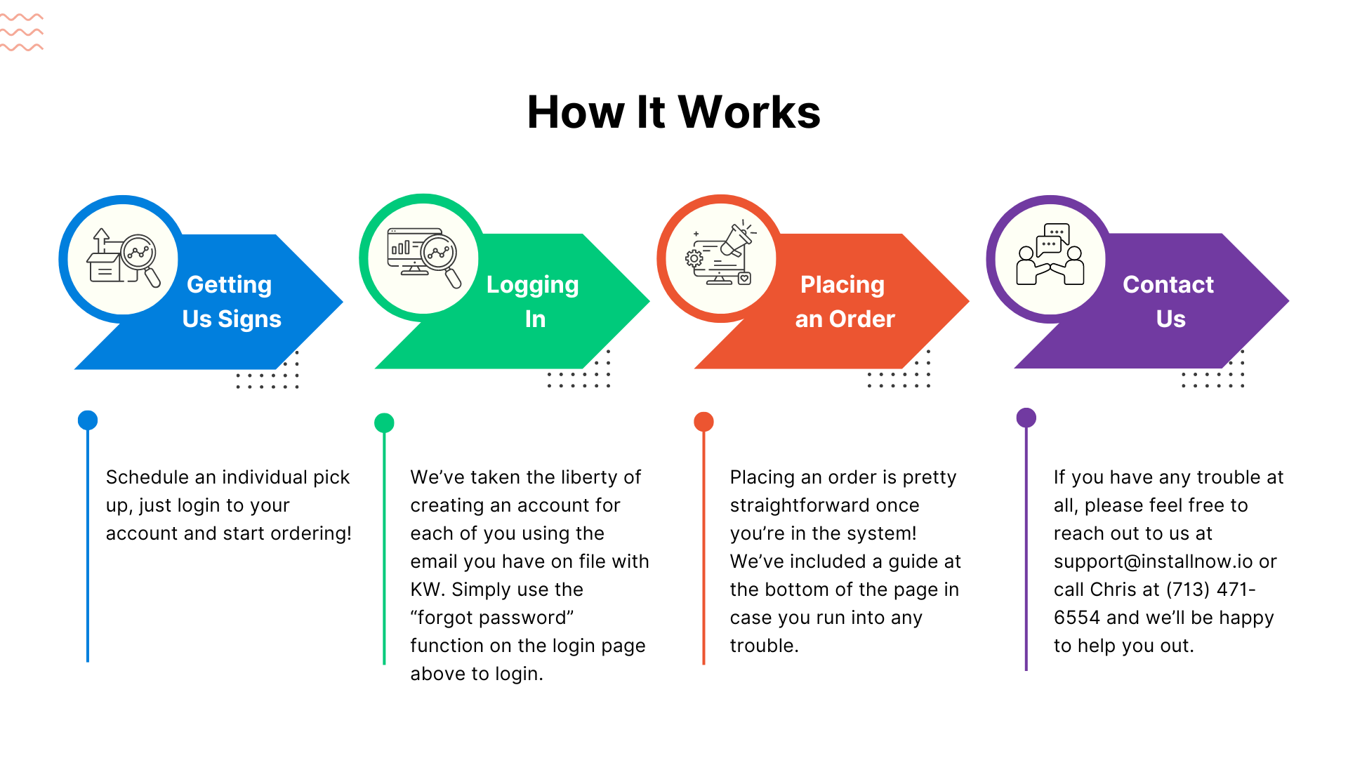 - You'll get email confirmations when we install and remove your signs, including picture proof that it was completed.